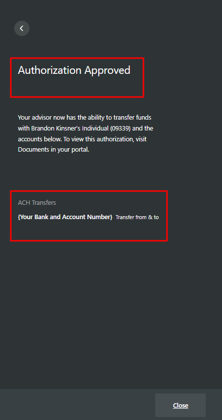 Once your bank account has been linked to your Altruist accounts your advisor will send one final request referred to as an MMA or "Move Money Authority". This will allow us to make deposits to fund accounts, withdrawals to your bank for scheduled distributions, and aid in easily and quickly completing future service requests such as the processing of a Required Minimum Distribution.