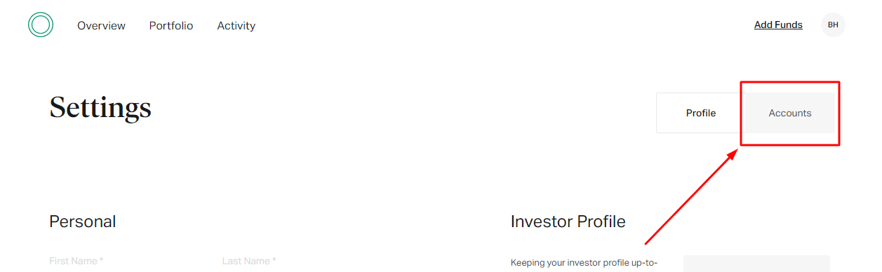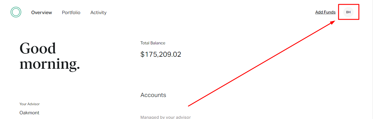 1. Log in to your Altruist account and navigate to where you see your initials in the upper right corner.