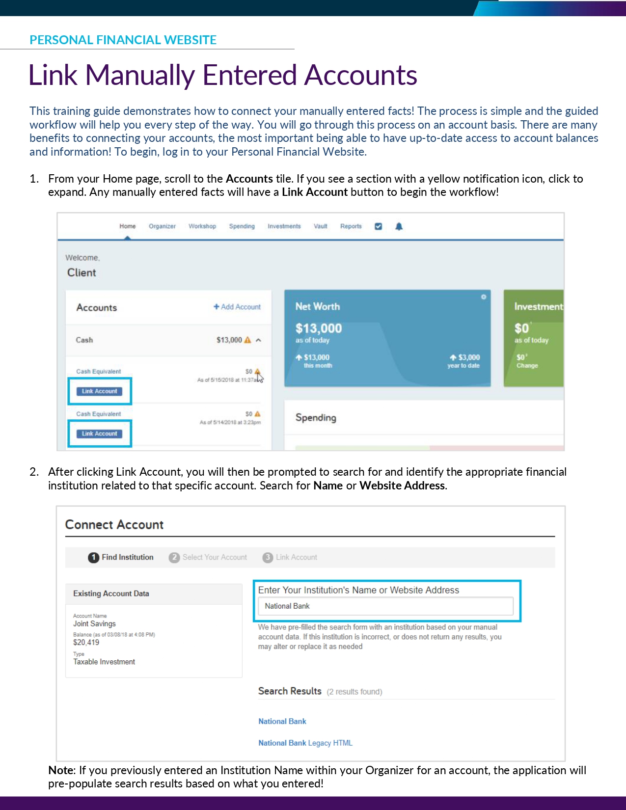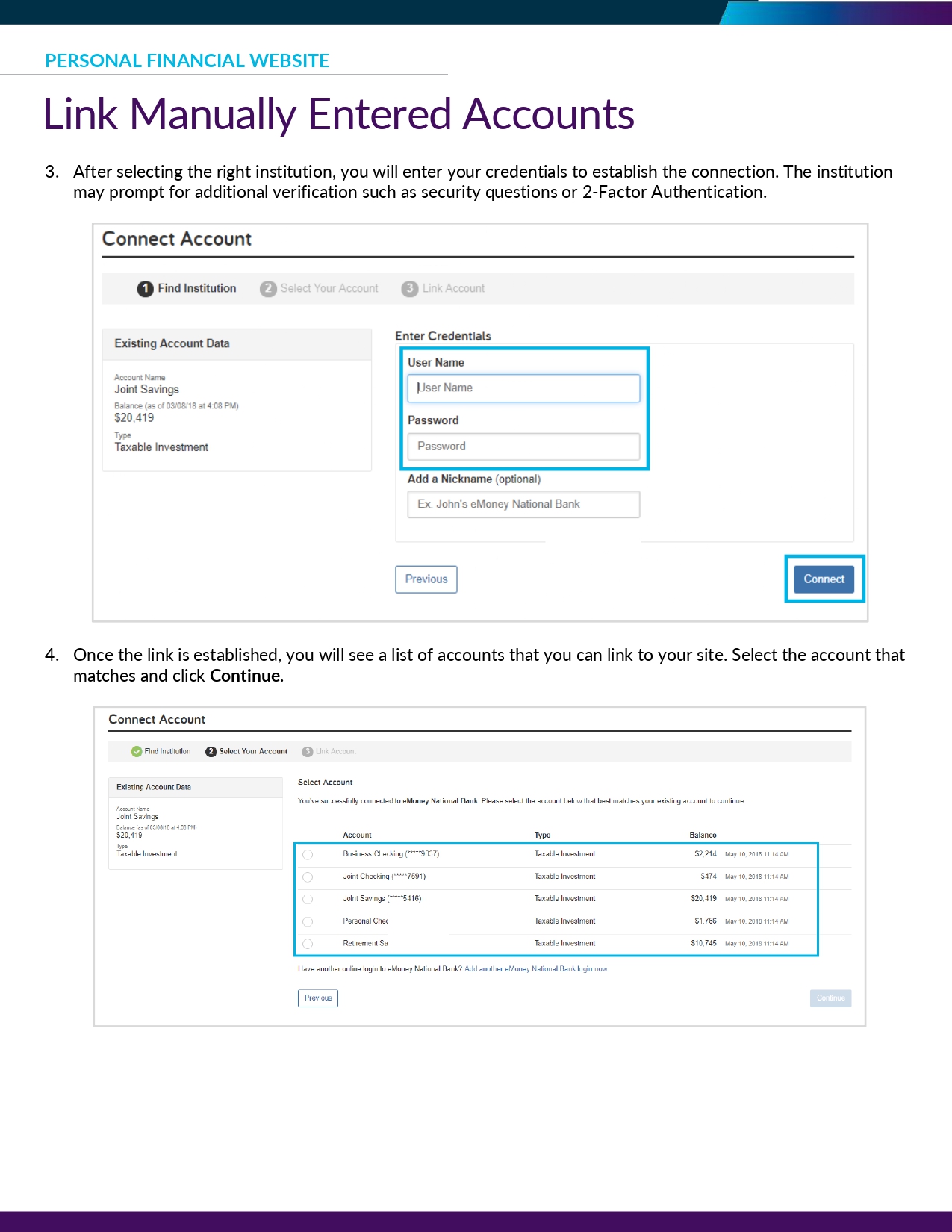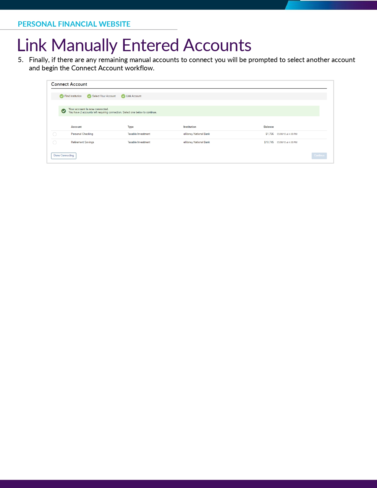 🖥️ Link Manually Entered Accounts | Oakmont Dashboard